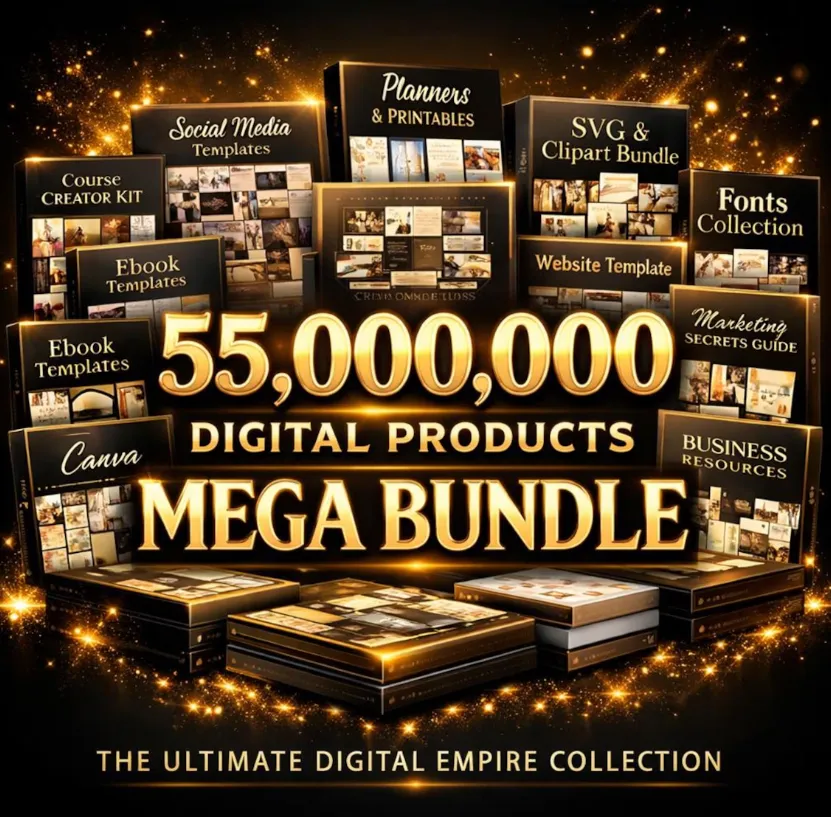 55M+ resellable ebooks, courses, templates, and digital assets across business, fitness, design, and online income niches.